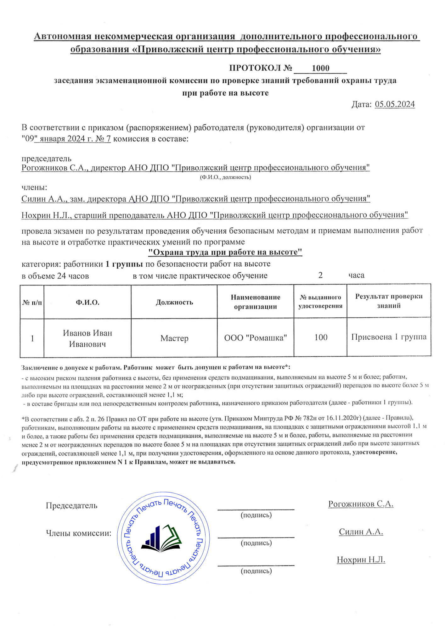 Выполняемые упражнения:- Применение гибкой горизонтальной анкерной линии.